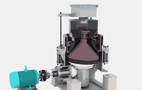 (1)设备的破碎腔较深,可以对破碎腔内的物料进行完全的破碎,使设备的破碎效率提高,增加了单位的生产量。
