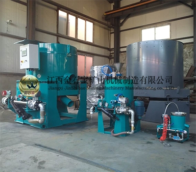 离心机(俗称黄金分选机)常用于回收贵金属如金、银、锡、铅,铂,钯等重选设备。利用矿物的密度不同,在高速离心旋转的同时,施加反冲压力水,来达到分选矿物的目的。