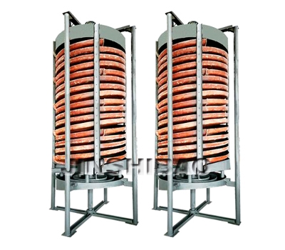 每台螺旋溜槽的螺旋槽可以做成不同头数,即有单头、双头、三头和四头结构。每头螺旋槽由4-5节螺旋叶片借螺栓连接而成